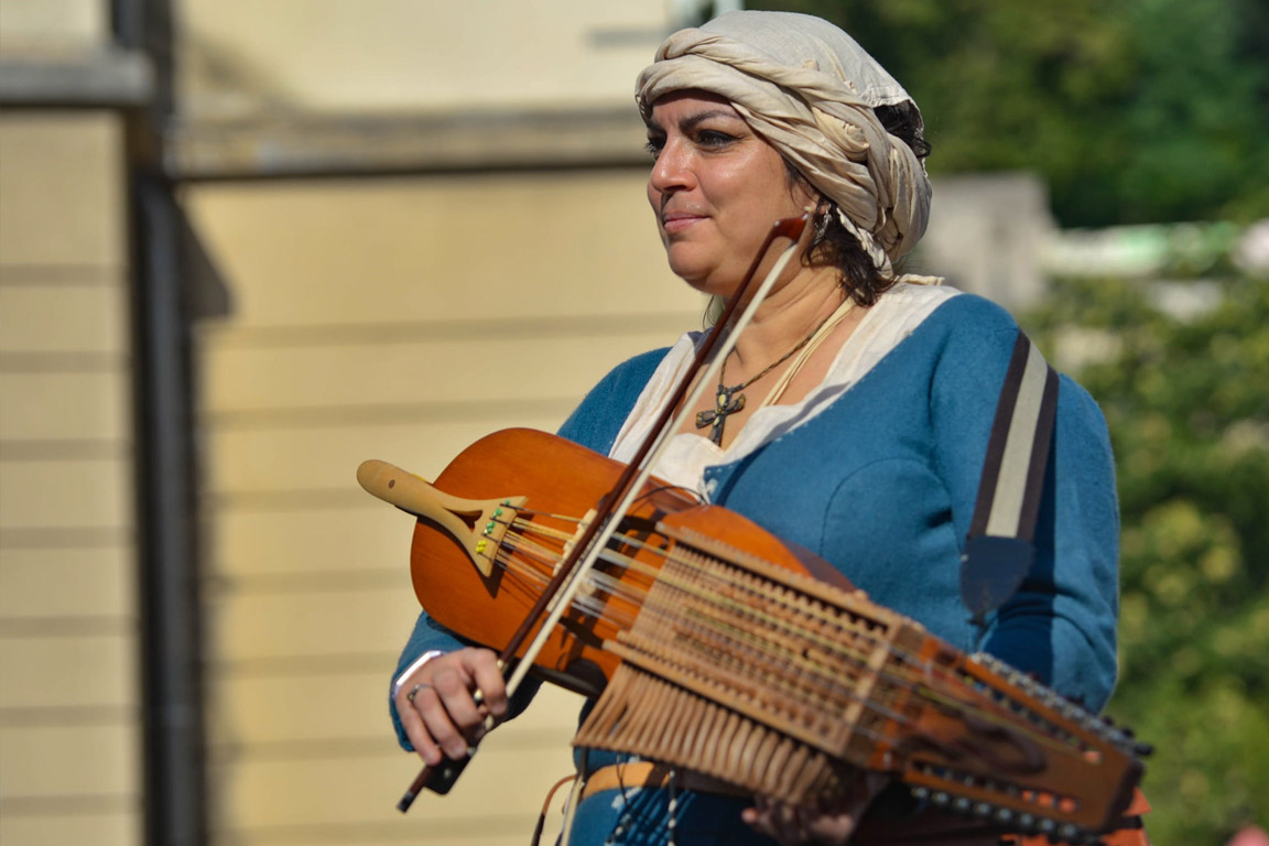 Dame Virginie manie l’archet avec génie ! Et nous voilà tout ébahis devant ces instruments d’un autre temps : vièle à archet, nickelharpa, les cordes vibrent et l’on frémit !